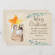Diese gesunde, individuelle Grußkarte bietet eine Krippe im Aquarellstil. Das wunderschöne religiöse Bild zeigt Joseph, der mit Maria sitzt, der den Jesus-Säugling unter dem Weihnachtsstern hält. Auf der rechten Seite erscheint eine herzliche Nachricht, die Sie personalisieren können, um Ihren eigenen Text einzufügen. Unter dem Text wird ein Familienname des Beispiels gedruckt. Der Hintergrund ist beige und verblasst und erinnert an ein altes Pergamentpapier.