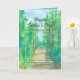 Eine Vatertagskarte mit einem Wanderweg durch einen Wald mit blauem Sommerhimmel und einem Bibelvers aus dem Buch der Sprichwörter 20:7. Im Inneren ist ein warmer Grün- und Textton, der nach Ihren Wünschen bearbeitet werden kann.