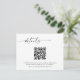 Cette belle carte de réponse de mariage comporte une calligraphie manuscrite avec une mise en page minimaliste pour définir le ton de votre mariage de style moderne ! Ajoutez facilement un code QR pour votre site Web de mariage et personnalisez *la plupart* des textes pour répondre à vos besoins. Les couleurs du texte sont entièrement modifiables —> cliquez sur le bouton "Personnaliser davantage" pour modifier !
