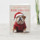 Festive Bulldog à Santa Hat et Cosy Sweater Christmas Greeting Card. Célébrez la saison des Fêtes avec cet adorable bulldog, habillé d'un chandail rouge et d'un chapeau de Père Noël, prêt à répandre la joie de Noël ! Cette image de charme capture le caractère adorable du bulldog, ce qui en fait un choix parfait pour les amoureux de les chiens et les amateurs de bulldog. L'arrière - plan enneigé ajoute une touche chaleureuse et festive à ce design unique et délicieux. Que vous envoyiez des salutations de vacances ou que vous cherchiez une carte de Noël mignonne, cette oeuvre d’art apportera un sourire à tous.
