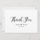Mariage de script moderne, élégant, noir et blanc à la main. Le modèle de carte de remerciements élégant non-photo mariage dispose d'un type de police de calligraphie d'écriture de texte "Merci" à la main assez tourbillonnant. Petit coeur d'amour mignon entre le nom de la mariée et celui du marié. Personnalisez votre nom et merci message. Si vous préférez écrire votre note à la main, supprimez simplement l'exemple de texte pour gagner de l'espace. Idéal pour un mariage minimaliste et élégant.