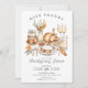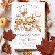 Cette invitation à dîner de Thanksgiving reflète élégamment l'esprit de la fête, avec des couleurs chaudes de l'automne et des images festives. Le design comprend une charmante illustration d'une table de vendanges généreuse, ornée de décorations saisonnières, invitant les invités à se réunir et à célébrer. Le texte est conçu avec soin pour transmettre un sentiment de chaleur et de gratitude, ce qui en fait le moyen idéal pour la famille et les amis invitations de partager un festin mémorable. Idéale pour des rassemblements formels et décontractés, cette invitation donne le ton d'une joyeuse célébration de l'Action de grâce.