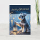A Schnauzer's Nighttime Adventure : Souhaitez à vos proches un Noël lumineux et joyeux avec notre adorable Schnauzer sur une nuit hivernale magique, lanterne à la main, entourée d'étoiles scintillantes.