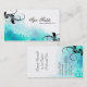 Favorisez votre spa avec ce remous feuillu bleu et blanc turquoise élégant et professionnel et éclaboussez le carte de visite. Cette carte est parfaite pour des directeurs de spa, des salons, des coiffeurs, des techniciens d'ongle, des chanteurs, des auteurs lyriques, des restaurants, des bistros, des établissements vinicoles, des fleuristes, des wedding planners, des magasins de robe de mariage, des magasins de détail, des bijoutiers, des magasins de bijoux, des magasins d'habillement, des couturiers, des dessinateurs d'intérieurs, et n'importe qui qui recherche un regard élégant et professionnel. Ce carte de visite comporte un remous feuillu de silhouette noire avec des flourishes splotchy. Conceptions 2012 de Copyright Pam.