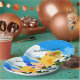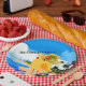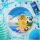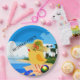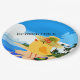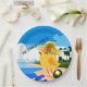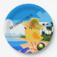 Remüde Kick, buntes Design mit Küken am Strand, maßgeschneiderte Papierplatte.