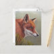 Cette carte postale présente une reproduction de ma peinture à l'huile originale d'un renard rouge.