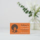 Ce design carte de visite a été créé avec l'esprit de styliste afro-américain/noir pour les soins capillaires ; en particulier ceux qui travaillent avec les cheveux naturels. Le carte de visite affiche des images vectorielles d'une fille noire portant ses cheveux de manière naturelle, un peigne et des ciseaux de salon. Cette carte orange vif vous fera remarquer.