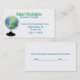 Carte de visite de professeur élégant, en blanc, avec des graphiques colorés d'un globe de bureau. Espace conférence parent/enseignant, au verso de la carte. Beau modèle de carte de visite pour enseignants et tuteurs. Customisez cette carte pour modifier le texte.