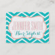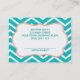 Ce carte de visite à la motif de chevron bleu, blanc et rose aqua est entièrement personnalisable pour tous les métiers que vous souhaitez ! Convient parfaitement à un coiffeur, un coiffeur, un wedding planner ou à toute personne qui aime un carte de visite glamour. L'avant a un nom et un titre, et l'arrière a un lieu de rendez-vous!