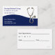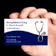 Cartes de visite de cabinet de médecin avec image graphique d'un stéthoscope, carte de rendez-vous sur le dos, et une excellente mise en page de texte que vous pouvez customiser en ligne. Le design moderne se distingue et donne à votre carte de visite un certain caractère et un style, avec la possibilité de changer la couleur arrière - plan blanche. Conçu comme modèle de carte de visite pour un médecin, un cabinet de groupe, une assurance maladie ou une clinique.