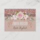 Ce carte de visite est conçu avec des parties scintillantes de rose de faux et un motif floral avec une ligne coordonnée de rendez-vous sur le dos ! Travaille grand pour un coiffeur, un cosmetologist, un wedding planner, ou un n'importe qui qui aiment un carte de visite fascinant. L'avant a un nom et un titre, et le dos a une tache de rendez-vous !