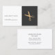 Carte de rendez-vous minimale gris foncé/blanc pour coiffeur. Conception avec motif ciseau en faux or.