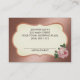 Ce carte de visite est conçu avec un arrière - plan rose en or, rose et taupe, et une rose vintage rose dans le coin des deux côtés ! L'arrière comporte une ligne de rendez-vous. Entièrement personnalisable pour toute profession comme un coiffeur, un cosmétique, un wedding planner, un design d'intérieur ou toute personne qui aime un carte de visite glamour.