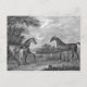 In dieser Vintagen Illustration durch John Scott, werden das Rennpferd zwei, das als König Herod und fliegendes Childers bekannt ist, von zwei Männern geführt. Sie stehen in einer natürlichen Einstellung mit Bäumen und Gras. Diese schöne alte Illustration ist realistisch illustriert, ausführlich, und in Schwarzweiss.