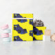 Cooles Papier mit niedlich blauen Rennsportfahrzeugen auf hellgelbem Hintergrund