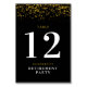 Diese Tischnummer-Karte ist für ein Party für den Ruhestand konzipiert. Gold Glitzer Konfetti erscheint auf einem schwarzen Hintergrund mit der großen Zahl im weißen Druck. Benutzerdefinierter Text ermöglicht die Personalisierung mit einem Namen und Ereignis.