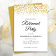 Diese Party Einladung für den Ruhestand zeigt Imitate goldene Glitzer Konfetti auf weißem Hintergrund und ist mit elegantem Skripttext Akzent.