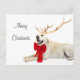 Gelbes Labrador Retriever trägt seinen großen, roten Weihnachtsbogen und Rentieranhänger, um sich eine frohe Weihnachtspostkarte für das Foto zu wünschen. Text kann leicht geändert, entfernt oder hinzugefügt werden
