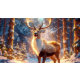 Schöner Rentier des Weihnachtsmannes, gesegnet durch goldenes Licht in einem Weihnachtswald... Lass uns deine Welt färben!!