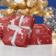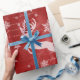 Rentiere und Schneeflocken im roten Hintergrund Geschenkpapier