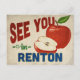Eine charmante Renton Washington Vintage Reise-Postkarte mit einem schönen roten Apfel, zusammen mit lustigen Retro-Text, der sagt: "See you in Renton"