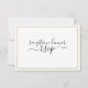 Ce boîtier de réception RSVP simple mais élégant, en or moderne, avec des bordures d'or et un élégant script noir lettré à la main, doit être utilisé en conjonction avec une carte d'invitation à la réception ou une carte de faire-part/réception mariage (vendue séparément) et contient des informations permettant à vos invités de répondre avec leur choix de repas de réception en vous retournant la carte. Facile à customiser avec votre propre date de réponse, ainsi que les choix de repas. Parfait pour la réception qui se tient dans un cadre simple, rustique, élégant, extérieur, grange, jardin, ferme, ou tout lieu mariage moderne ou tendance. Facile à personnaliser avec votre propre photo et informations de réception de mariage. Conception de T.K. Goforth.
