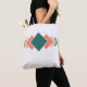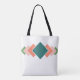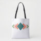 Diese Tasche hat ein Bauhaus-Design aus sieben überlappenden Diamanten, die vertikal entlang des Gegenstands in Retrofarben Blau, Rosa und Grün verlaufen.