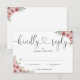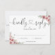 Une simple et élégante carte de réponse RSVP avec cœur de script noir et blanc floral rose poudré avec vos détails dans une typographie chic. Conçue par Thisisnotme©