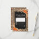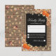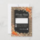 Cartes de réponse de mariage de récolte automnale rustique avec un fond en bois chic campagne, centre de tableau en ardoise noire, corde, citrouilles d'Halloween, feuillage d'automne, glands, une dispersion de feuilles d'automne, guirlande de lumières scintillantes et un modèle de réponse personnalisé.