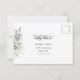 Cette carte de réponse RSVP pour un événement de mariage avec un encart d'adresse de retour présente un style minimaliste moderne élégant avec des arrangements de feuilles de feuillage de verdure à l'aquarelle et une belle calligraphie et des polices de caractères typographiques sérif et propres sur fond blanc. La simplicité et la conception épurée de cette carte de réponse RSVP pour mariage conviennent à tous les thèmes de mariage et constituent certainement un excellent ajout à votre mariage. Il suffit de personnaliser les noms des conjoints, la date, l'adresse de retour et d'autres informations en quelques étapes faciles et de la personnaliser pour lui donner une belle touche personnelle.