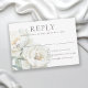 Complétez votre suite de mariage avec cette carte de réponse élégante aux pivoines blanches, ornée de fleurs blanches ivoire et de feuillage délicat de sauge. Conçue pour se coordonner parfaitement avec l'invitation, cette carte de réponse ajoute un charme raffiné inspiré du jardin à votre suite d'invitation de mariage. Personnalisez le modèle de texte avec la date de réponse requise. Ce design est un choix charmant pour les mariages de printemps ou d'été.