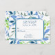 Motif de feuille d'aquarelle bleue et verte avec cadre à coin fendu pour réponse de mariage.