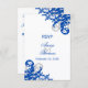 © 2012 Socialite Designs. De belles cartes de réponse de mariage avec des volutes et des fioritures d'angle de couleur bleu roi et gris argenté.
