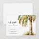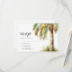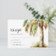 Cartes de réponse de mariage de destination de plage avec un fond blanc simple, palmier tropical à l'aquarelle et modèle de réponse facile à personnaliser.