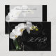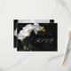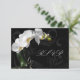 Carte RSVP assortie à l'ensemble Orchidée complet. Célébrez votre mariage ou votre occasion spéciale avec style grâce à ce design inspirant et passionné représentant une orchidée blanche sur fond noir tourbillonnant. Caractéristiques : gros plan sur une fleur d'orchidée blanche en pot pittoresque contrastant avec un fond noir et des tourbillons graphiques.