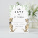 carte de réponse RSVP de mariage à thème de dinosaures avec mariée et mariée de dinosaures amusante avec feuillage botanique aquarelle pour apporter la joie jurassique préhistorique à votre jour de mariage. Calligraphie moderne de typographie capricieuse avec facile à personnaliser modèle. Mariée et mariée T-Rex unique en couleur marron et aquarelle vert eucalyptus verdure oeuvre originale de l'artiste Catherine Sweetman Idéal pour la réception du jour de mariage ou le dîner de répétition. La suite mariage jumelée comprend tout ce dont vous aurez besoin lors de votre voyage mariage amusant