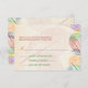 Une palette de couleurs arc-en-ciel de feuilles montrant leur délicate venaison est affichée sur le côté droit de cette carte de réponse mariage. L'arrière - plan est une couleur écru délicate, légèrement en détresse, avec de grandes feuilles marquées d'eau sur le dessus. L'inverse montre le même arrière - plan pour mettre en surbrillance les noms du couple. Parfait pour tout mariage sur le thème de l'arc-en-ciel ! Disponible avec des produits correspondants.