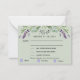Un arrière - plan vert sage, du texte noir. Décoré de fleurs de lavande et de verdure d'eucalyptus. Personnalisez et ajoutez la réponse par date et sélections de menu. Arrière : couleur arrière - plan verte sauge