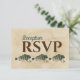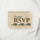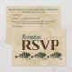 Cette carte de réponse RSVP présente un choix de trois entrées -- ou personnalisez selon vos besoins. Caractérisée par un fond de parchemin vintage et de charmants poissons à l'aquarelle verte. Conçue pour se coordonner avec notre collection de mariage Poissons à l'aquarelle vintage, mais parfaite pour tout repas ou événement impliquant des amateurs de pêche ou des amateurs de plein air de tout type. L'exemple montre les informations pour une "réception", mais vous pouvez personnaliser et modifier cela pour une "répétition de dîner" ou tout autre événement.