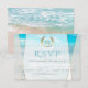 Réponse au mariage | Mariage de plage géométrique à monogramme moderne | Une touche moderne sur les invitations de mariage de plage - Mariage unique conçu pour laBarefootBride™ par ©WhimsicalArtwork™ présente une forme géométrique de style terrarium décalé avec des transparences variables dans les facettes pour permettre à l'arrière-plan de la plage de l'océan tropical de transparaître sous diverses formes et intensités. Une approche ludique de la typographie dans le texte - avec les initiales des noms de la mariée et du marié entourées d'une couronne de laurier sur le dessus - en deux couleurs (sarcelle et or) - suivies de polices serif coordonnées en bleu vert grisâtre (repris de l'océan) sarcelle (repris des vagues de l'océan en arrière-plan) et lettrage or. Les détails du mariage sont clairs et simples sur le recto de l'invitation uniquement - un design de plage tropicale coordonné au verso. Tout