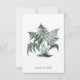 Une illustration classique de fougères vertes orne la couverture de cette carte de réponse RSVP. La date de votre événement est imprimée en dessous. La même illustration est traitée en filigrane au verso, tandis qu'un ornement de plante de lys vintage complète votre texte de réponse personnalisé. Disponible avec des produits assortis.