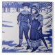 Aus einer ca. 1885 Serie von Fliesen, die die Monate des Jahres von Josiah Wedgwood & Sons repräsentieren. Das ist die Kachel im Februar in blau und weiß und zeigt ein Junge und Mädchen, die im Schnee spazieren gehen. Ein großartiges Memento für Geburtstage, Valentinstag und andere Anlässe im Februar.