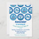Une super mignonne invitation d'anniversaire de fête de requins avec un motif de requin bleu audacieux sur un arrière - plan blanc.