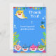 Fêtez l'anniversaire de votre petit requin ! Ce joli bleu océanique avec des requins colorés sera un succès pour votre fête. Bubbles, poissons et coraux ajoutent de petits détails amusants à l'invitation. Idéal pour les parties sous la mer ou les parties de requins. Photo de Mujka.