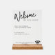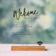 Signe acrylique minimaliste moderne accueillant les invités avec votre réseau wifi et informations de mot de passe.