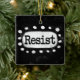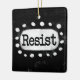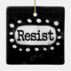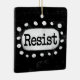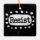 Der Text "Resist" wird auf schwarzem Hintergrund zentriert. Der schwarze Text sitzt auf einem weißen Rechteck mit großen, texturierten weißen Punkten um ihn herum, was einen spielerischen Kontrast zu der soliden Hintergrund der Farbe bietet.