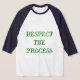 Un T-shirt vert et blanc qui indique le "respect le de processus"