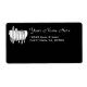 Ein Set von einfachem Silbergeschirr auf einer Tischserviette in Schwarz und Weiß mit Platz für Ihren Namen in Skript und Adresse in Retro Serif benutzerdefinierter weißer Text auf schwarz. Klicken Sie auf Anpassen, um Schriftart, Hintergrundfarben, Etikettengröße und vieles mehr zu ändern, und rettete Sie Ihr Design für später.