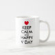 Restez calme et tasse à café Heureuse Sainte-Valentin. Coupe mignonne au coeur rouge. Restez calme et continuez à mème avec peu de coeur. Humour de typographie de la Saint Valentin. Une idée de cadeau amusant pour petit ami ou petite amie amoureuse.