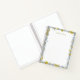 Une idée de cadeau amusant pour les enseignants et les enfants - Occasion de rentrée scolaire ou de remerciement des enseignants. Moyen encourageant de prendre des notes, d'écrire un poème, de dessiner des choses drôles. Le design présente de petites choses scolaires - casquette, sac, montre, bonbon, nœud, cravate, symbole et note de musique, pomme et cerise en vert olive et blanc - en bordure sur fond bleu clair, et une zone d'écriture blanche. Vous pouvez personnaliser le texte du modèle en ajoutant le nom de votre enseignant ou de votre enfant ou une note pour un cadeau ou une célébration spéciale !